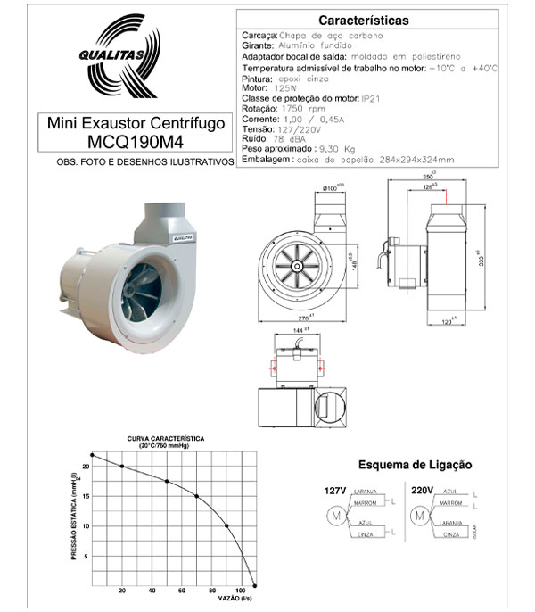 HomeExaustoresExaustores Centrífugos Mini Exaustor Centrífugo MCQ190M4